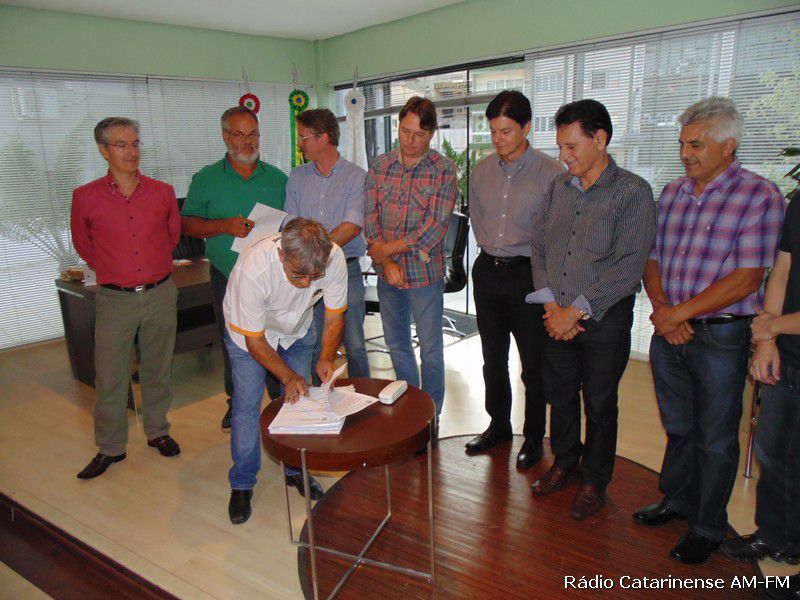 31/03/2015 Com a presença de um grande número de convidados e também de autoridades, aconteceu no final da tarde desta terça-feira (31), a assinatura e entrega da Ordem de Serviço a empresa Andrade que venceu a licitação, para a construção dos muros de gabião no Rio do Tigre em Joaçaba.