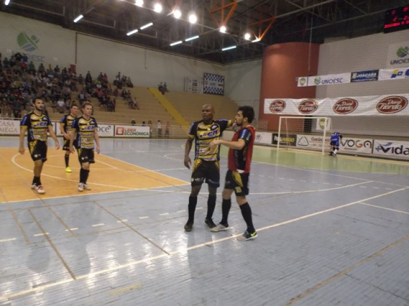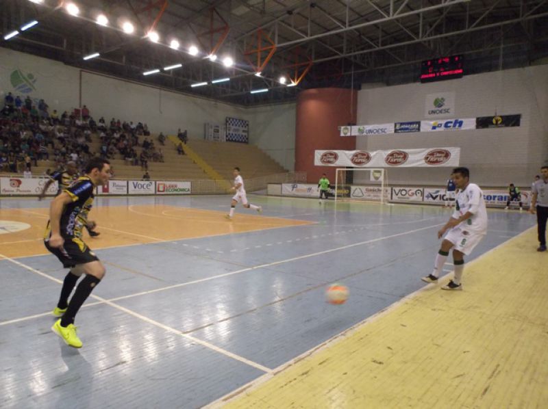 Em dois tempos completamente distintos, o Joaçaba Futsal construiu a sua vitória na segunda etapa, pois no primeiro tempo a equipe de Chapecó veio bem fechada e explorando os contra-ataques. Numa cobrança de lateral errada pelo capitão Zé Henrique, o atleta Mayco de Chapecó abriu o placar, fazendo 1 a 0. Mesmo com toda a pressão, os comandados de Cassiano Klein não conseguiram reverter o placar na primeira etapa.