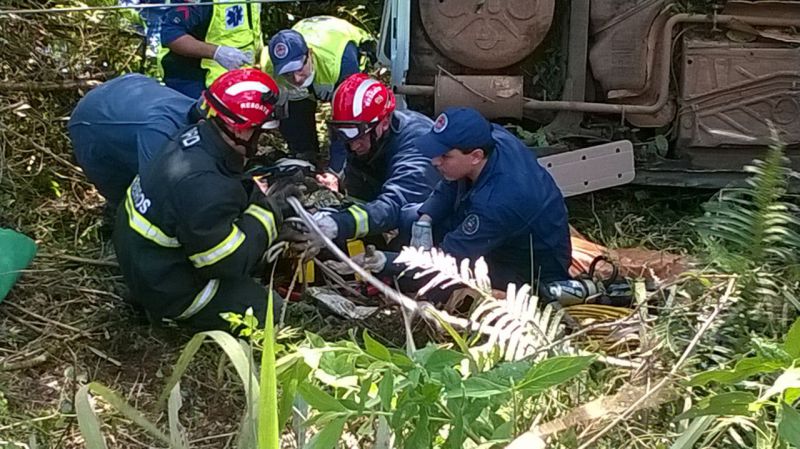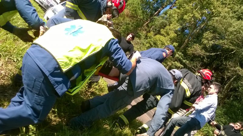 21/05/2015 Uma saída de pista na manhã desta quinta-feira (21) na BR-282 em Joaçaba mobilizou as equipes de resgate do Corpo de Bombeiros e do SAMU. O acidente foi registrado por volta das 09h30 numa curva localizada nas proximidades do distrito industrial. O motorista, Renato Dalalasta perdeu o controle do VW/Gol, com placas de Joaçaba, que saiu da pista e capotou. O motorista, que estaria sem o cinto de segurança, foi projetado para fora do veículo e sofreu algumas fraturas. Ele foi resgatado e conduzido ao setor de emergência do Hospital Universitário Santa Teresinha.