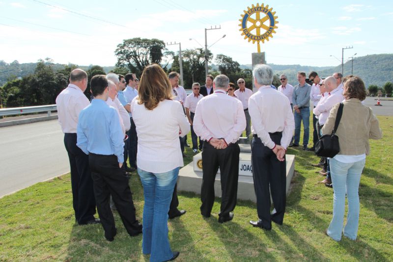 10/06/2015 A quarta-feira, 10 de junho, foi especial para o movimento rotariano de Joaçaba. A diretoria atual, que encerra a gestão no final deste mês de junho, promoveu um pequeno ato para marcar a inauguração do Marco Rotário. A “Roda Dentada”, símbolo do Rotary Club, acompanhada por um “J”, a primeira letra de Joaçaba, foi implantada na rótula em frente a empresa Pegoraro no acesso Adolfo Ziguéli. As duas peças foram colocadas em cima de uma base de concreto, servindo como marca para divulgação do clube de serviço.