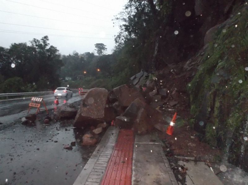 Já na cidade de Joaçaba o problema foi registrado no Acesso Adolfo Ziguelli onde o trânsito também ficou em meia pista, devido ao deslizamento de pedras para o asfalto.