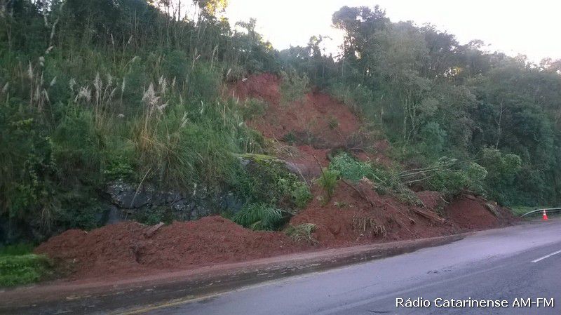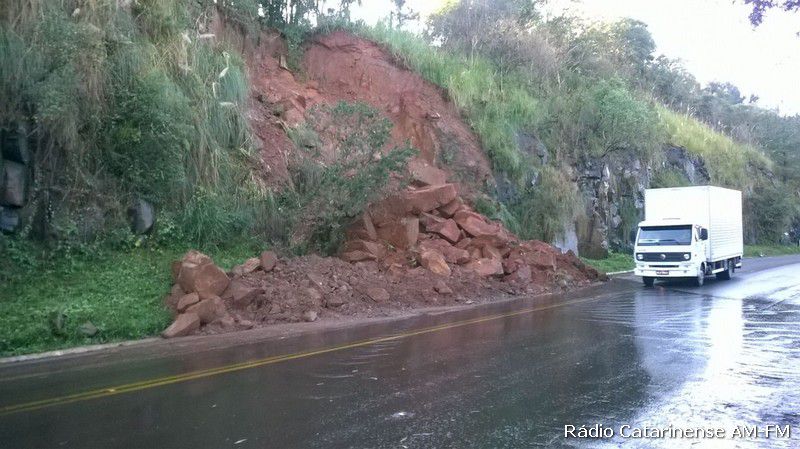 15/06/2015 Depois de ter sido interditada neste final de semana devido a queda de uma barreira, a Curva do Passat na BR-282 já está totalmente liberada. A interdição por parte da Polícia Rodoviária Federal (PRF), aconteceu por causa das fortes chuvas deste domingo (14) que fizeram com que pedras, lama e árvores fossem levadas para a pista. A limpeza no trecho do Km 374 foi realizada por máquinas e funcionários do Dnit. Nesta segunda-feira (15) o trânsito no local estava fluindo normalmente.
