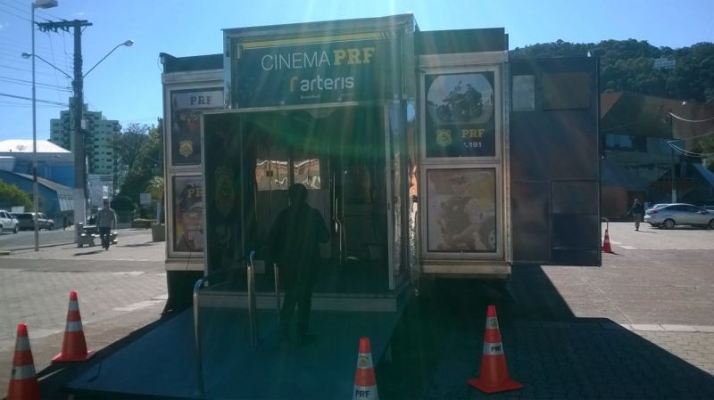 15/06/2015 A Polícia Rodoviária Federal transformou uma carreta em sala de cinema para o trabalho de conscientização de segurança no trânsito a toda população, especialmente a estudantes de escolas municipais. Inaugurado em 2014 com 92 lugares, teleprojeção e ar condicionado, já percorreu os 25 postos da PRF em Santa Catarina.