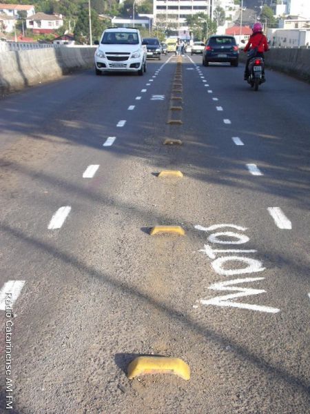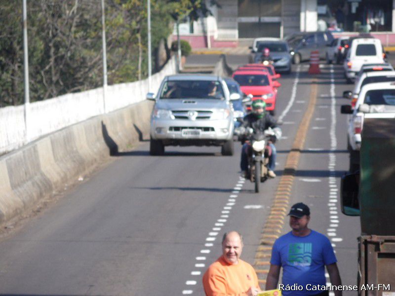 27/06/2015 Começou a funcionar no final da manhã deste sábado (27), o corredor para motocicletas na ponte Emilio Baumgart que liga Joaçaba a Herval d´Oeste, nas proximidades do Hospital São Miguel. Por volta das 8h a parte central da pista foi pintada e automaticamente um panfleto explicando a alteração no trânsito foi entregue aos motoristas e motociclistas que passavam pelo local.