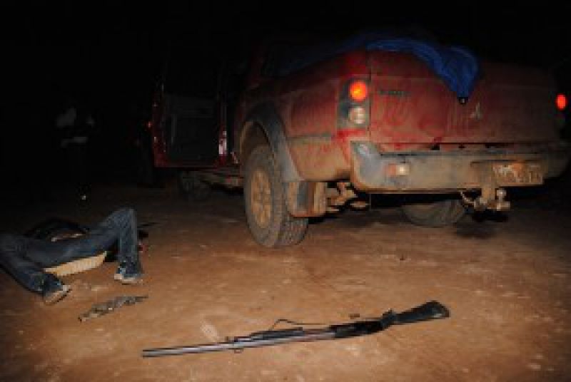 De pronto, equipes de ROTAM, RPA, Serviço Reservado e Central de Comando da 2º Companhia, iniciaram deslocamento e cerco. Separadas, as equipes se postaram em supostos caminhos de fuga para interceptar o grupo. Quando se dirigiam pela estrada da localidade do Fundo Grande, equipe da ROTAM visualizou uma camionete com as características semelhantes às descritas pelo denunciante. A L200, em alta velocidade, desviou da viatura policial e seguiu em fuga. Policiais realizaram o acompanhamento tático até se depararem com o veículo atravessado na estrada, sendo recebidos à bala pelos homens em fuga.