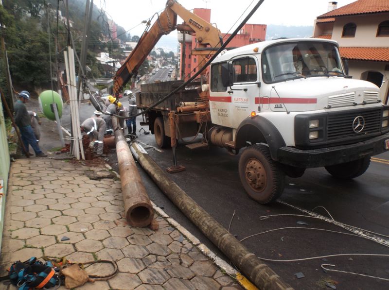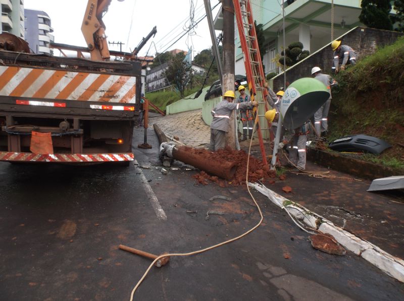24/07/2015 A Getúlio Vargas, uma das principais avenidas de Joaçaba, está interditada por conta de um acidente. Técnicos da CELESC decidiram fechar a avenida para conseguir trocar um poste e recolocar os cabos de energia. O poste quebrou após uma violenta colisão registrada na madrugada desta sexta-feira. Uma jovem de 20 anos, que conduzia um GM/Celta com placas de Celso Ramos, que subia sentido Unoesc, perdeu o controle do veículo e atingiu o poste na base. Ela foi levada para o hospital com lesões e fratura de clavícula.