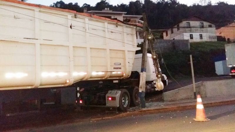 03/08/2015 Uma carreta quebrou um poste no início da manhã desta segunda-feira (03) no município de Lacerdópolis. O acidente aconteceu por volta das 06h30 quase em frente ao terminal rodoviário. O motorista estava manobrando para sair da garagem quando atingiu o poste da CELESC. Cabos de energia ficaram pendurados e a Polícia Militar (PM) isolou a área até a chegada dos técnicos da CELESC. Ninguém ficou ferido, apenas danos materiais foram registrados.