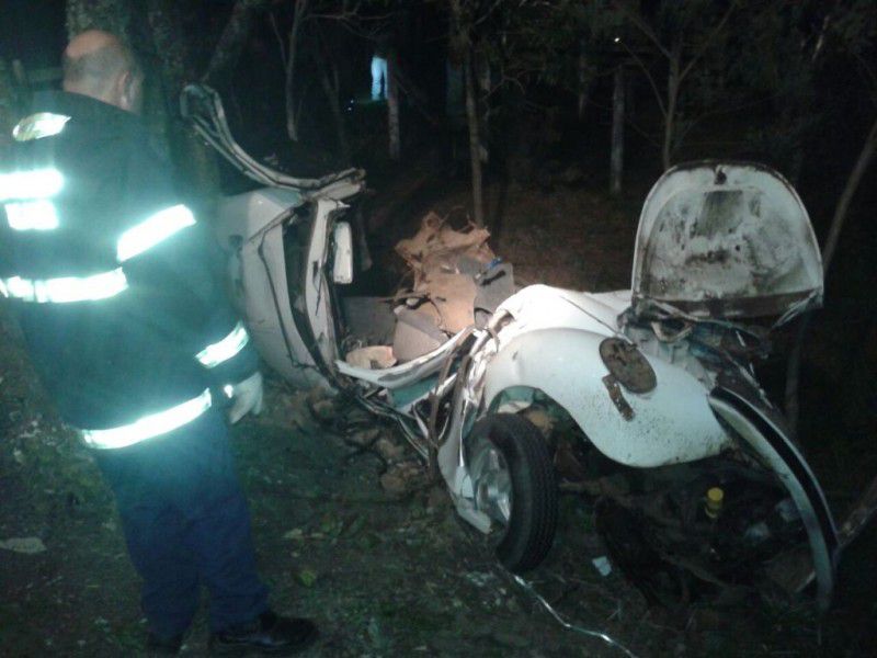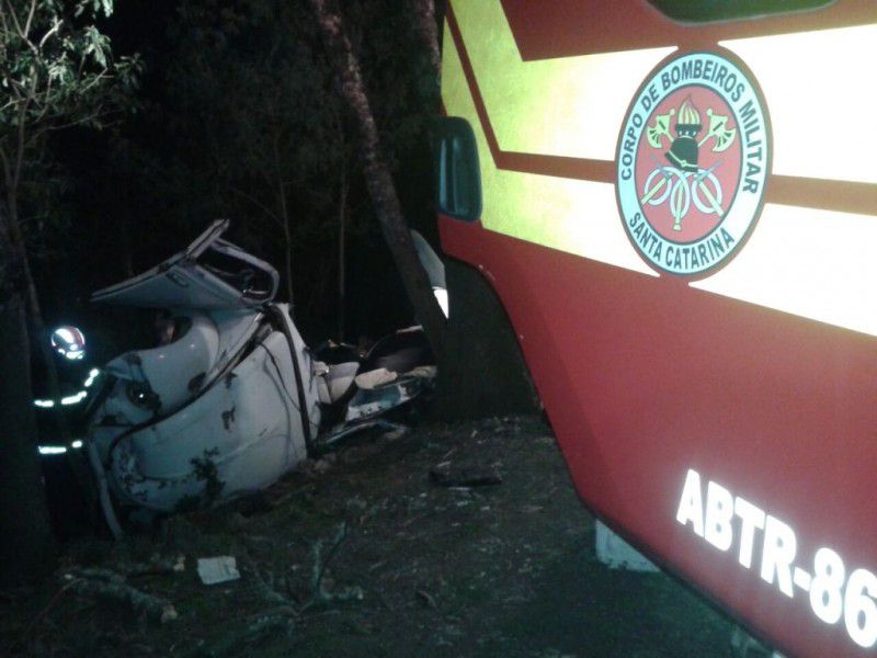 08/08/2015 Um grave acidente automobilístico mobilizou a guarnição do Corpo de Bombeiros Militar de Água Doce nesta sexta-feira (7), quando um automóvel Fusca colidiu violentamente contra uma árvore por volta das 18h25 no Km 19 da SC-150, na localidade de Herciliópolis.