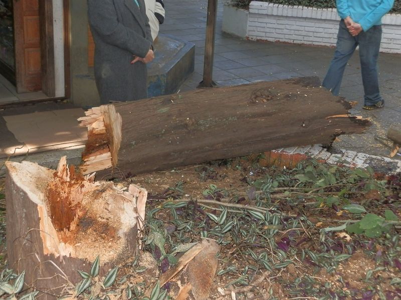 15/05/2012 Uma operação do Corpo de Bombeiros para o corte de uma árvore na praça Adolfo Konder em Joaçaba (praça da prefeitura) chamou a atenção na manhã desta terça-feira (15) de pessoas que passavam pelo local. A árvore, um cipreste, oferecia riscos para os frequentadores da praça, pois o tronco estava comprometido (fotos). Engenheiros da prefeitura realizaram uma vistoria e constataram através de laudo que a mesma deveria ser removida por medida preventiva. O Corpo de Bombeiros mobilizou a praça e cortou a árvore por volta das 10hs. As fotos mostram que o tronco já estava oco. O cipreste é muito utilizado como árvore ornamental e na produção de madeira.