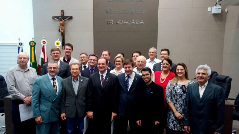 16/09/2015 A Câmara de Vereadores de Joaçaba realizou na noite desta quarta-feira (16) sessão solene em homenagem aos 50 anos da regulamentação da profissão de administrador. A sessão solene foi proposta pelo vereador Juscelino Ferraz. A diretoria do Conselho Regional de Administração (CRA) participou da reunião. O Jubileu de Ouro está sendo comemorado neste mês de setembro. São 50 anos de regulamentação da profissão, uma profissão jovem e essencial para o bom andamento das empresas seja ela pública ou privada. O fortalecimento da profissão se dá pelo trabalho desenvolvido pelos Conselhos em todo o país. Os Conselhos Regionais tem como missão Promover a Ciência da Administração valorizando as competências profissionais, a sustentabilidade das organizações e o desenvolvimento do país. O presidente do CRA em Joaçaba é o empresário Djalma Hack.