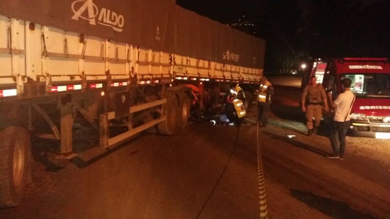 A carreta tomou conta da pista e o trânsito da avenida Santa Teresinha teve que ser desviado pelo estacionamento da empresa ADM. Pedro Mascarelo, 52 anos, era morador da rua Domingos Nereu Parise, barro São Vicente, Herval d’Oeste. O acidente aconteceu por volta das 21h.