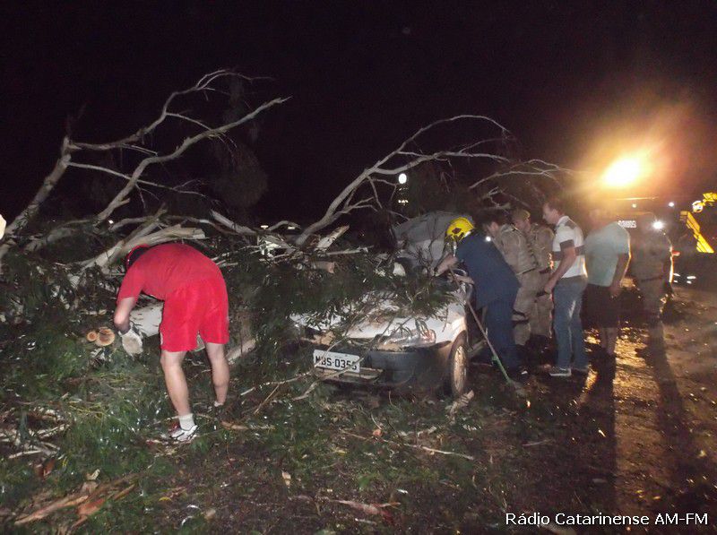 A ocorrência de maior destaque foi registrada na BR-282, proximidades da rodoviária municipal, na Cidade Alta, onde um automóvel GM Celta de cor branca e com placas MBS-0355 de Joaçaba, foi atingido por uma árvore (eucalipto). No veículo além do motorista tinham mais duas caroneiras, suas filhas que nada sofreram.