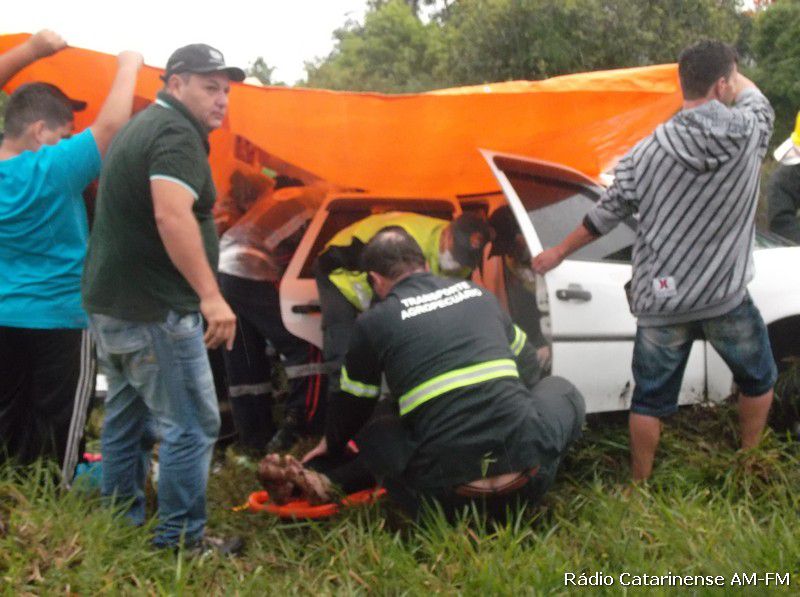 O casal do Gol e mais um menino foram conduzidos pelo Corpo de Bombeiros até o Hospital Universitário Santa Terezinha (HUST) de Joaçaba para receberem atendimento médico.