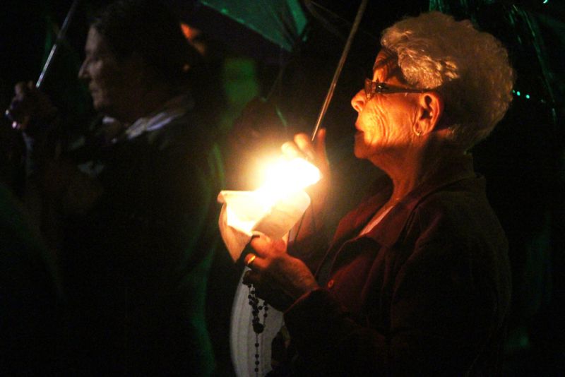 27/09/2015 A chuva não deu trégua na noite deste sábado (26) e a procissão luminosa da Romaria de Nossa Senhora da Salette de Marcelino Ramos (RS) foi realizada em meio a muita água. Aos poucos os devotos foram se aglomerando em frente a Igreja Matriz da cidade de onde saiu a procissão por volta das 20h rumo ao Santuário. Além das velas e tochas, o guarda-chuva foi item obrigatório na caminhada santa. Pelas ruas eles seguiram superando os obstáculos impostos pela mãe natureza. No trajeto muita lama, barro mas a certeza de que o objetivo seria alcançado apesar de todas as dificuldades.