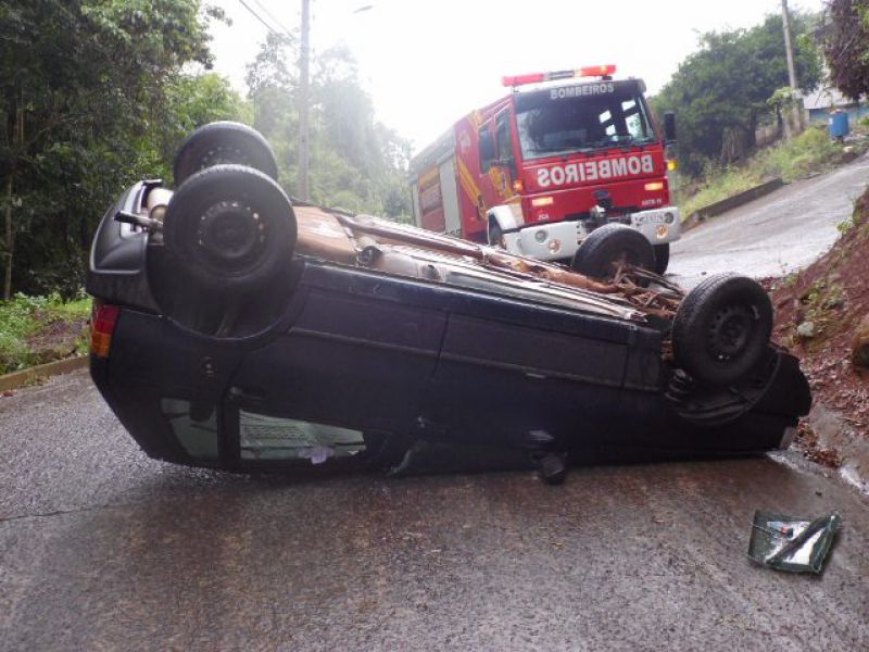 15/10/2015 Uma mulher identificada pelas iniciais E.M.F. de 45 anos, capotou o seu veículo Fiat Uno de cor azul com placas de Herval d´Oeste, após perder o controle do automóvel no entroncamento das ruas José Rupp e Emílio Hall, nas proximidades do Colégio Melo e Alvim em Herval d´Oeste.