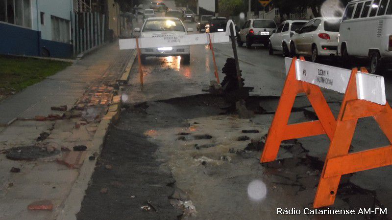 22/10/2015 As fortes chuvas durante a madrugada e manhã desta quinta-feira (22) trouxe problemas aos moradores da rua Senador Euzébio na área central de Herval d´Oeste. Quem saiu para trabalhar foi pego de surpresa com o rompimento da tubulação que passa pelo local. O problema foi constatado defronte a Escola Básica Municipal Pequeno Príncipe.