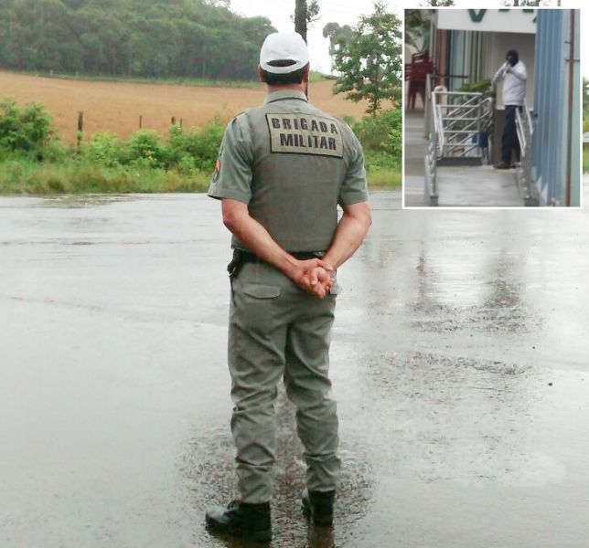 O confronto ocorreu em frente a agência do Banrisul. O policial contou que quando efetuou o primeiro disparo com a calibre 12 o último assaltante estava deixando o banco. “Ele estava saindo do banco sem nenhum refém e foi isso que me fez reagir, pois agi com segurança, sabendo o que estava fazendo, era legítima defesa e a comunidade estava segura”. O policial acredita, sem ter certeza, que o primeiro disparo atingiu pelo menos um dos bandidos. Quando o grupo ajudava o comparsa, carregando o mesmo para dentro do veículo, houve o segundo disparo que o policial acredita que tenha atingido o motorista. “Segundo os populares atingiu o motorista, mas como até o momento não apareceu mais nenhum ferido eu não sei”. No total foram feitos quatros disparos, sendo que um deles atingiu a porta do Santana. Com a informação de que o motorista estaria baleado, o policial saiu correndo pela avenida na tentativa de conter o grupo pois existia uma expectativa de que eles pudessem parar. O veículo não parou e o policial conseguiu carona e perseguiu o bando até a comunidade de linha Coqueiros onde o veículo foi abandonado e incendiado. O militar relatou que chegou ao local cerca de 10 minutos após o Santana ser incendiado, pois o fogo estava na fase inicial. Ele disse também que acredita que a quadrilha contou com ajuda de pessoas da que conheciam bem a região. “Minha intenção é segurar, deter eles, mas infelizmente não deu” finalizou o policial.