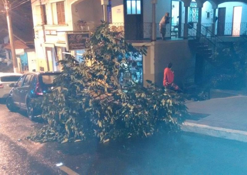 Alguns estabelecimentos comerciais também foram prejudicados com a queda de placas de publicidade que chegaram a atingir veículos que estavam estacionados.