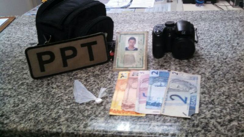 Com todas estas informações, os policiais se embrenharam no mato e ficaram a espera, até que o elemento ao deixar uma residência foi abordado pelos policiais e na revista foi encontrada uma bucha de cocaína e mais uma máquina fotográfica digital.