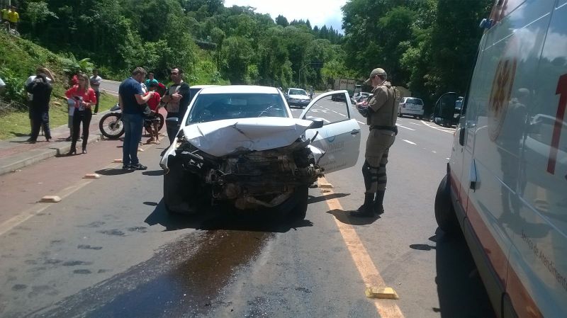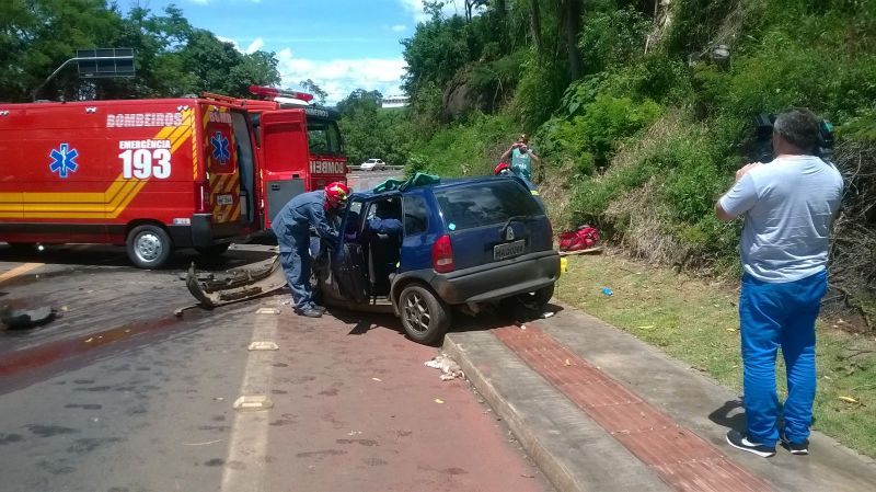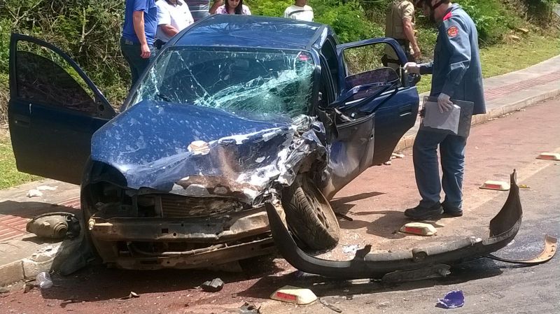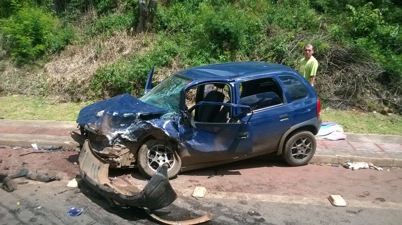 20/11/2015 Várias equipes de resgate do Corpo de Bombeiros e do SAMU foram mobilizadas no início da tarde desta sexta-feira (20) para atender um acidente de trânsito em Joaçaba. O acidente aconteceu por volta das 14h no acesso Adolfo Ziguélli, próximo ao novo terminal rodoviário. Foi uma colisão violenta envolvendo um GM/Corsa de Joaçaba e uma VW/Saveiro com placas de Erval Velho. O motorista da Saveiro, Daniel Felipe, 28 anos, foi levado ao Hospital Santa Teresinha. No Corsa de Joaçaba duas pessoas, sendo que a caroneira Maria Salette Pereira dos Santos sofreu lesões graves nas pernas, de acordo com o cabo Leocir do Corpo de Bombeiros. As equipes de busca tiveram muito trabalho para conseguir resgatar as vítimas que ficarm presas nas ferragens. O motorista da Saveiro não sofreu ferimentos graves. O condutor do corsa era Ivan Pereira dos Santos.
