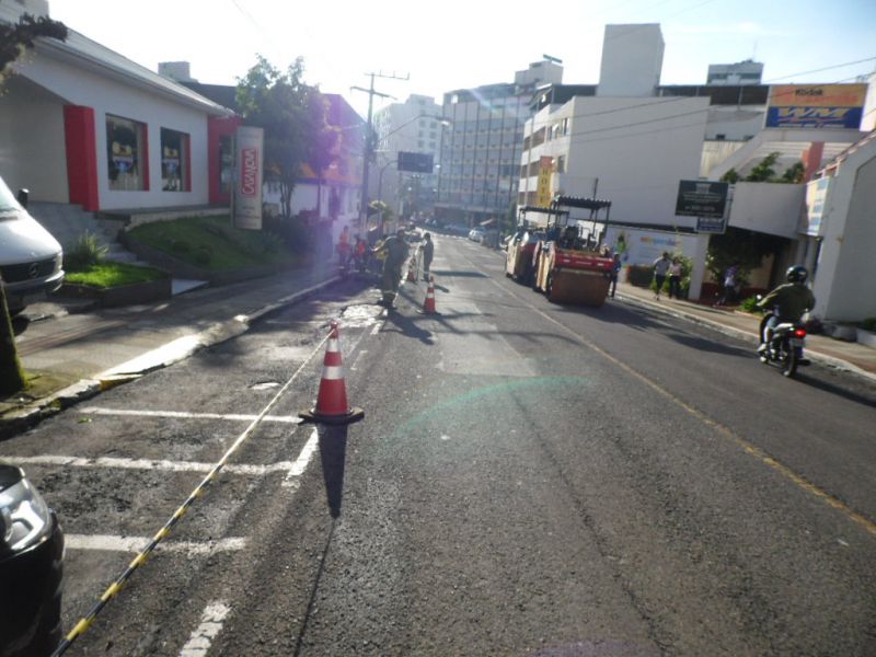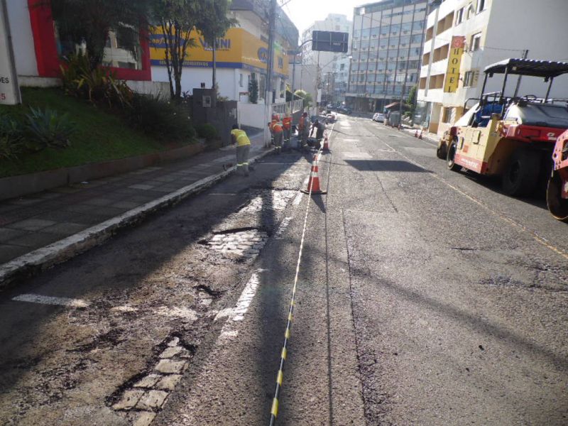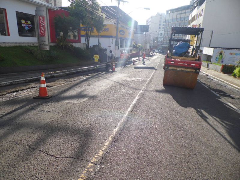 23/11/2015 Um trecho da rua Sete de Setembro em Joaçaba está interditado nesta segunda-feira (23). A Secretaria de Infraestrutura da prefeitura está promovendo a revitalização entre as proximidades do Hotel Jaraguá até a casa de número 700, na travessa Angelina Machado de Lima. Neste trecho será aplicada uma nova capa de asfalto para corrigir alguns defeitos na pista. A princípio, se o tempo colaborar serão dois dias de serviço. Nesta segunda-feira o primeiro trecho vai até a empresa Luz e Center. Amanhã o trabalho será retomado até a travessa Angelina Machado de Lima.