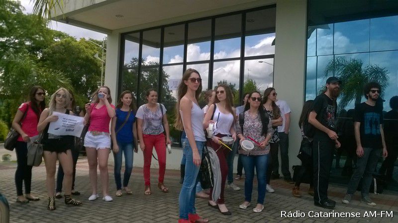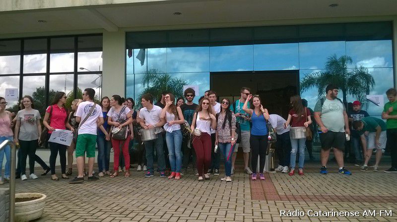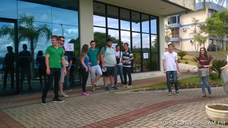 24/11/2015 Para protestar contra o aumento que deverá acontecer nas mensalidades na Unoesc de Joaçaba, acadêmicos realizaram na tarde desta terça-feira (24), um ato de protesto defronte ao prédio da reitoria.