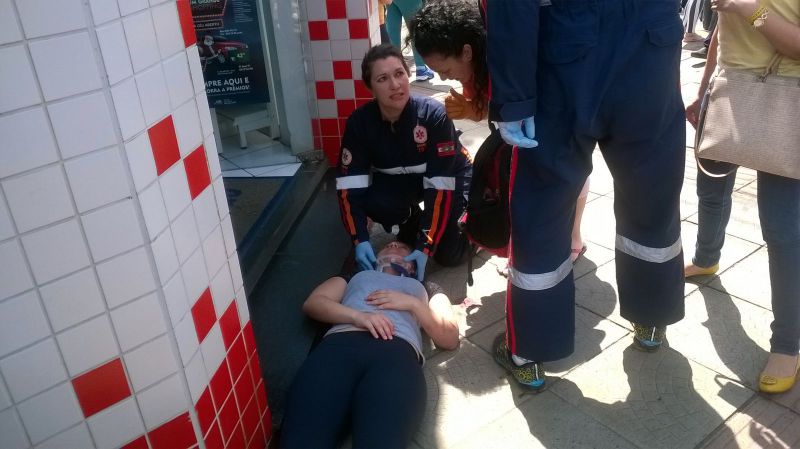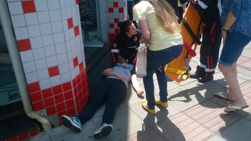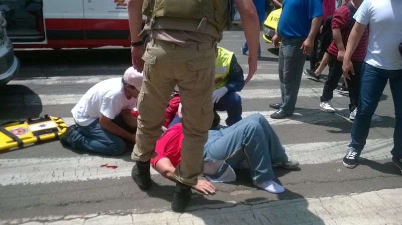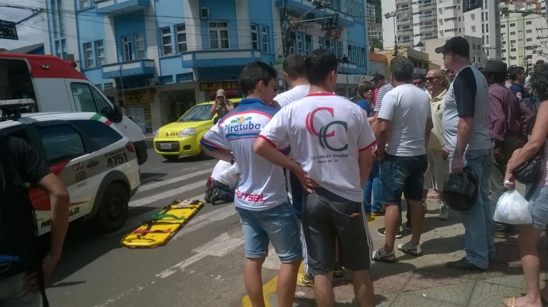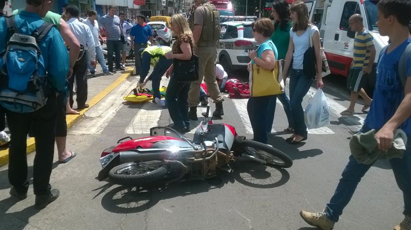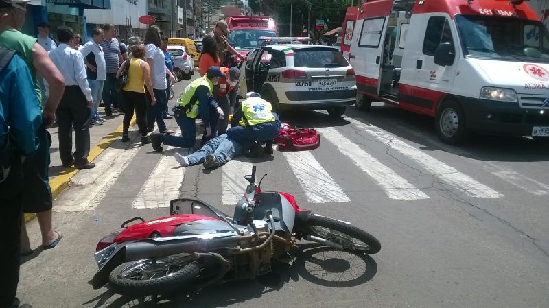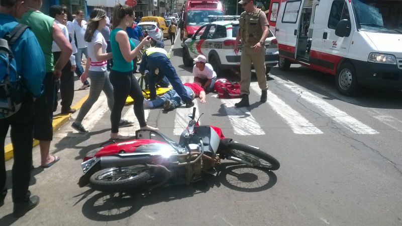 Segundo uma testemunha entrevistada pela Rádio Catarinense, o motorista da ambulância teria invadido o sinal vermelho atingindo a motocicleta. Mesmo com a colisão, o motorista da ambulância não parou, seguindo pela Getúlio Vargas e desaparecendo. Na motocicleta estavam duas pessoas, sendo que uma mulher ficou gravemente ferida, sendo arremessada a alguns metros. A outra pessoa que estava na moto sofreu ferimentos mais leves. A vítima foi levada para o hospital inconsciente. Suspeita-se que a ambulância é do município de Ouro. "Eu vi a mulher da moto voando por cima do canteiro de flor e caindo na escadaria da farmácia São João" contou uma testemunha.