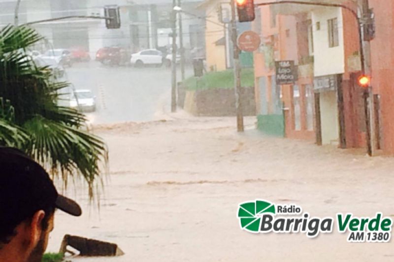 02/12/2015 Em poucos minutos de chuva, na tarde desta quarta feira (02) alagamentos já ocorrem no centro de Capinzal e Ouro, as bocas de lobos não estão suportando a intensa chuva e estão transbordando.